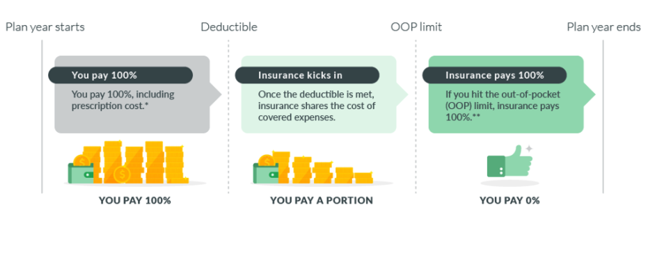 ** Insurance pays 100% of covered, in-network expenses. You must still continue to pay your monthly premiums to maintain your coverage. The deductible and OOP costs reset on the renewal date of your company’s plan, which may or may not align with the calendar year.