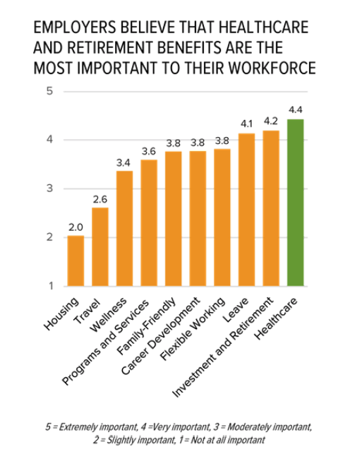 And, no surprise here: healthcare benefits and their rising costs remain top of mind. But, while SHRM talks about more and more employers shifting healthcare costs to employees, fortunately, that’s not what we’re seeing.