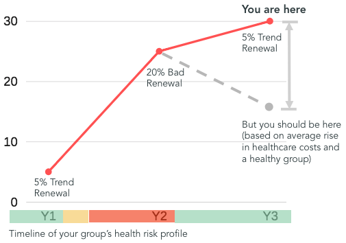 A single bad renewal will continue to inflate your costs year after year, even when your group profile becomes healthy.